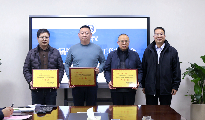 会议全面回顾与总结了学院2025届毕业生就业工作,并进行工作表彰。于忠华宣读了表彰决定,董靖、于忠华分别为先进集体和优秀个人颁奖。