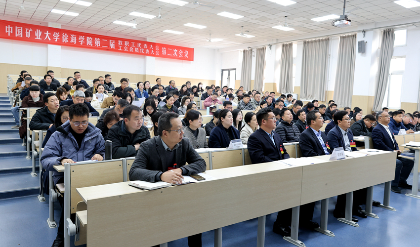 3月14日,徐海学院第二届教职工代表大会暨第二届工会会员代表大会第二次会议在一南101教室举行。全体正式代表、特邀代表、列席代表共130人参加会议,共商学院发展大计。党委副书记、纪委书记邢雅伟主持开幕式。